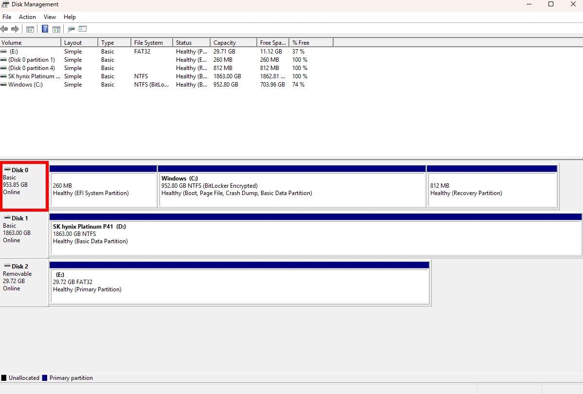 Una vez que TPM 2.0 esté activo, el siguiente paso es comprobar el formato de partición del disco donde está instalado Windows. Para activar Secure Boot, el disco debe estar en formato GPT (GUID Partition Table).