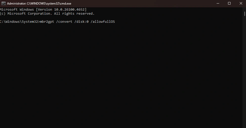 (sustituye “disk:0” por el número de disco correspondiente a tu unidad de Windows, según el paso anterior). - Si la validación es correcta, verás un mensaje indicando que el disco puede convertirse de forma segura.