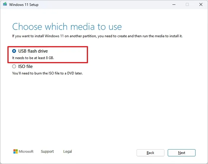 - Selecciona la opción Unidad flash USB.