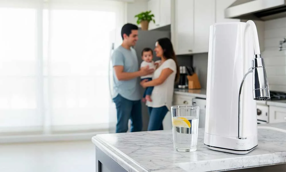 ¿La botella filtrante sirve como “filtro principal”? Es ideal para uso personal y salidas, con 4 llenadas/día, el cartucho dura ~2 años; 1.600 L por cartucho. Para hogar, mejor un sistema fijo como Aqua Nano.