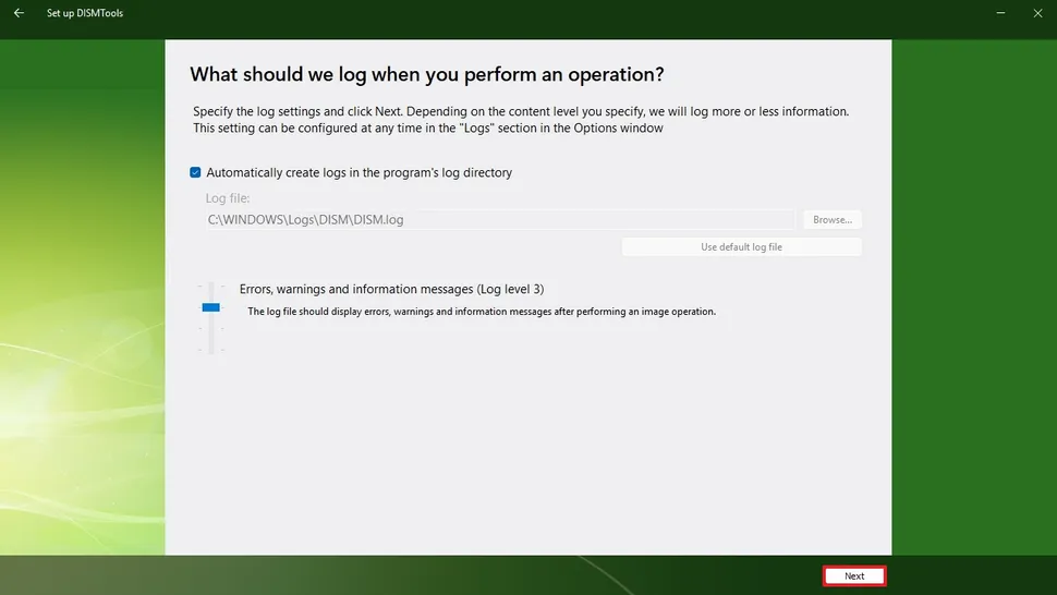 1. (Opcional) Selecciona la ubicación donde quieres guardar los registros y el nivel de errores o mensajes de advertencia.