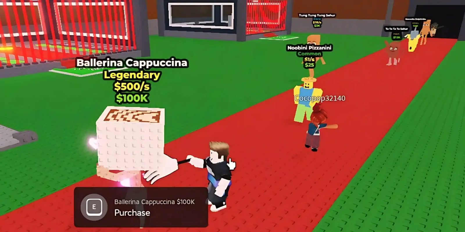 Los objetos de deseo son personajes voxel con apariencia de meme que el juego genera de manera aleatoria. Piensa en ellos como la versión Gen Alpha capitalista de Pokémon: en lugar de atraparlos “por diversión”, aquí acumulas brainrots para generar la mayor cantidad posible de dinero dentro del juego. Muchos de estos personajes hacen referencia al fenómeno surrealista del “Italian brainrot”, donde se crean imágenes con IA que fusionan animales con objetos aleatorios. El primer personaje conocido de este estilo, llamado Tralalero Tralala, combinaba un tiburón con pies que calzaban zapatillas Nike; naturalmente, es una de las criaturas más valiosas en Steal a Brainrot.